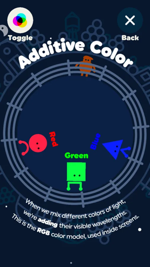 Color Corral helps kids learn about the fundamentals of color theory. Explore concepts like mixing and blending, and additive and subtractive color systems, via playful characters and fast-paced action!