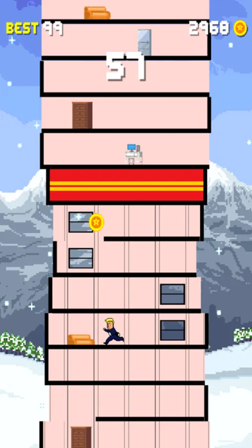 Climb up to gain points! Collect coins as you go to unlock new, exciting characters! Compete with your friends for the high score!