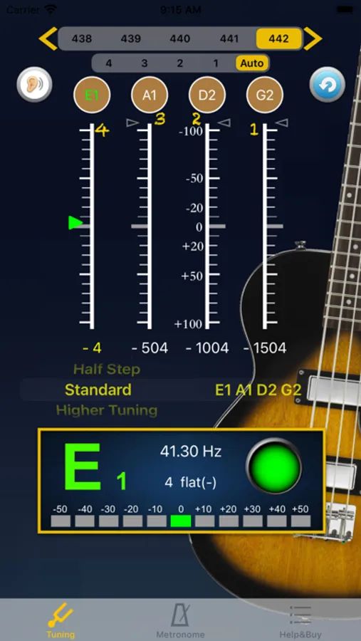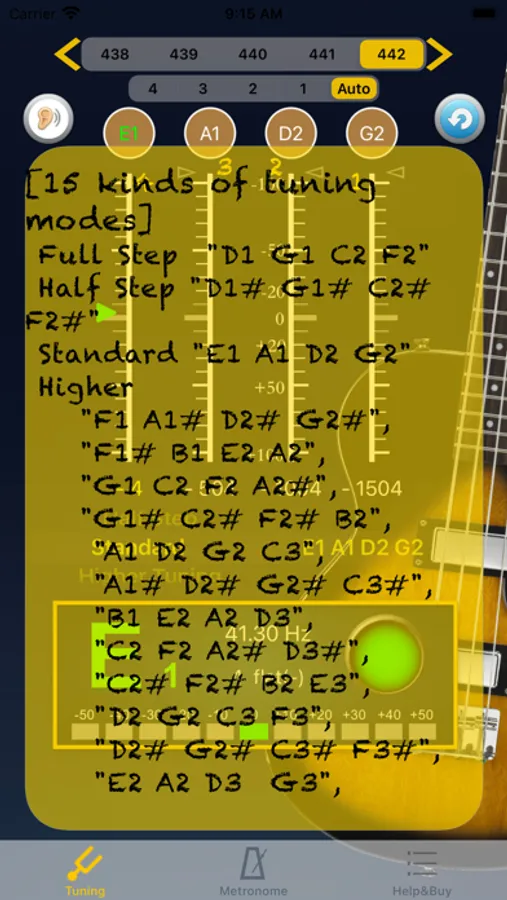 - A4 Frequency adjustment: choose 428~452 frequencies for A4 string.