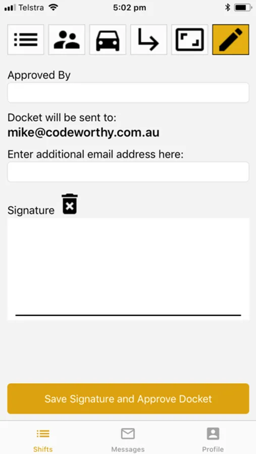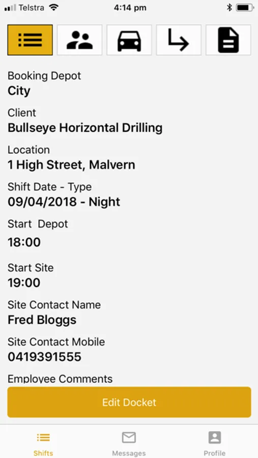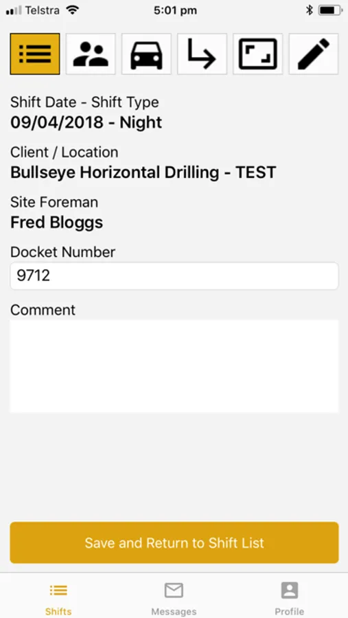 If the user of the app is set as a Team Leader for the shift, then he/she can create a Docket and enter the following information on it: