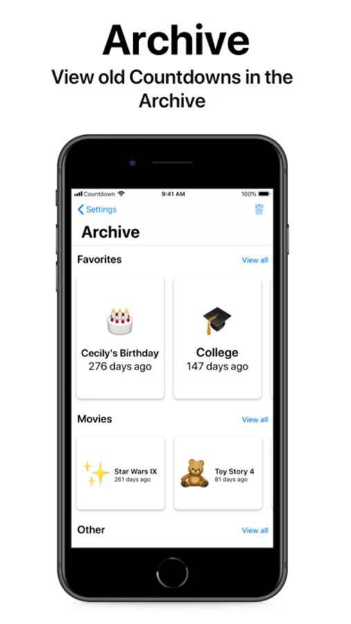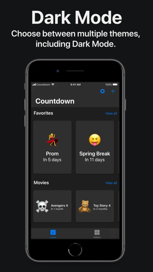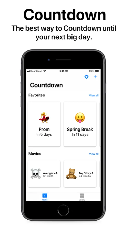 Countdown makes counting down those important days easy. Simply title your Countdown, give it an emoji, and pick the date for your Countdown.