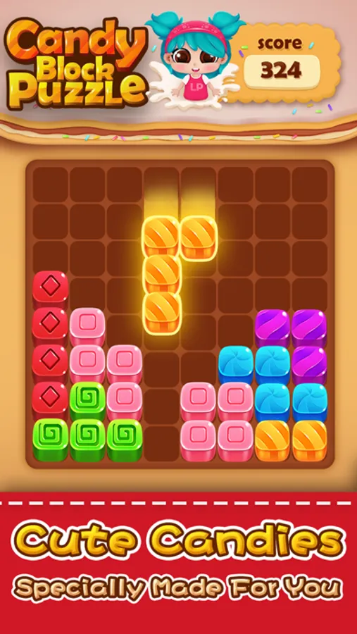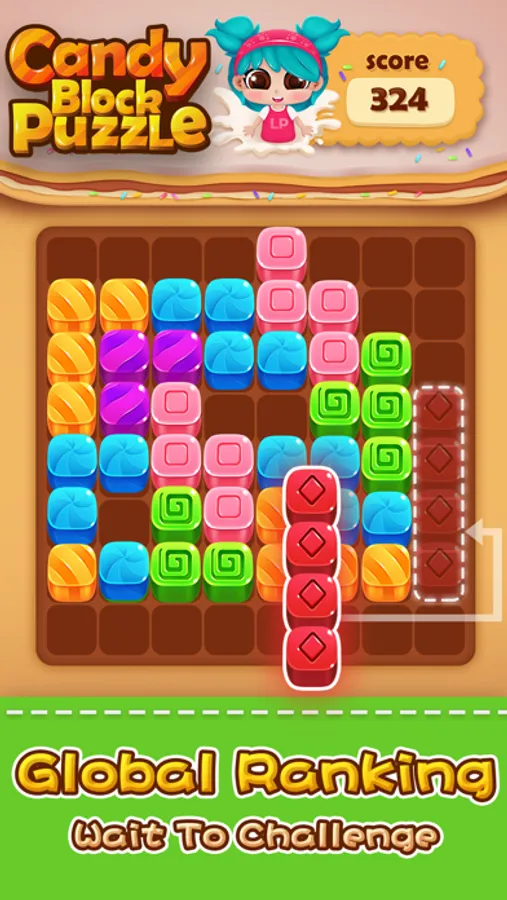 The goal of this game is to place blocks to eliminate a whole row or a whole column on a vertical or horizontal line on the grid. The more candy blocks you remove, the higher the score you will get. Remember that if there is no extra space in the grid then the game is over.