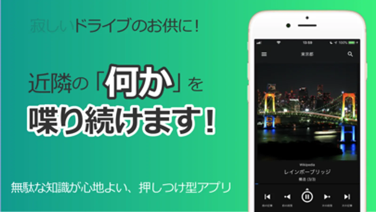 運転中のスマホの操作は危険です!本アプリは放置してても勝手に喋り続けますので運転中の操作は決してしないようにお願いします。