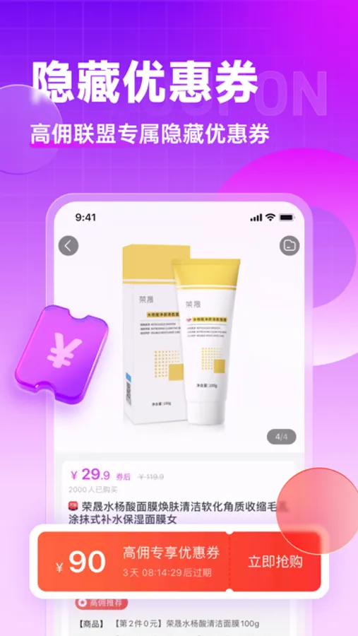 与淘宝、天猫、京东、拼多多、抖音、快手、唯品会、苏宁、网易考拉等全网知名电商合作,整合全网海量隐藏优惠券,千万人都在用的网购省钱利器!