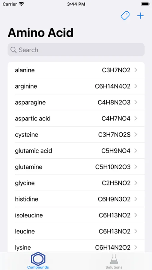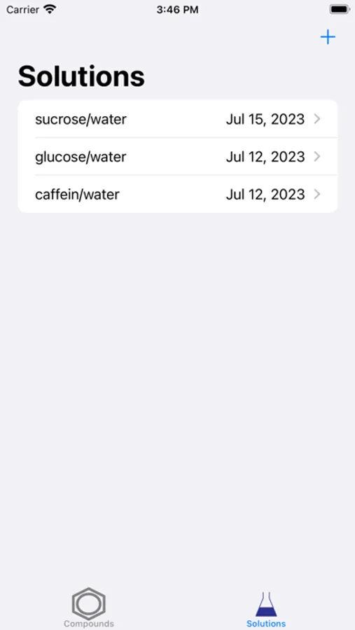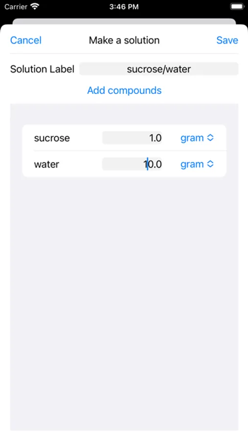 Choose compounds downloaded from 'PubChem' and make a solution. The app allows to record a list of compounds with amounts dissolved in a solution. For the saved solutions, the app displays their compositions in gram and mol.