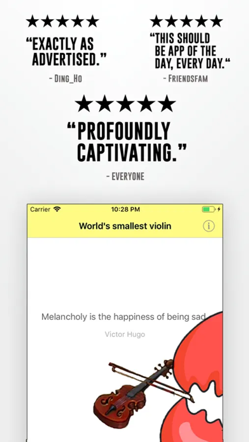 Move the finger in rhythm of whiny song playing just for your friends, and watch them realize how sad their story is. If that is not enough, read out some of the most brilliant peoples' quotes that we generate as you move the fiddle.