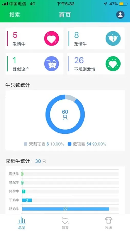 小牧童是一款畜联网应用,具备发情监测、定位监测功能。发情监测能让牧场管理者准确掌握奶牛发情和健康状况,实现高效管理和科学配种;定位监测能实现牛羊定位、轨迹实时查询、超出围栏报警及牛羊档案管理、绿色溯源服务查看等信息服务。