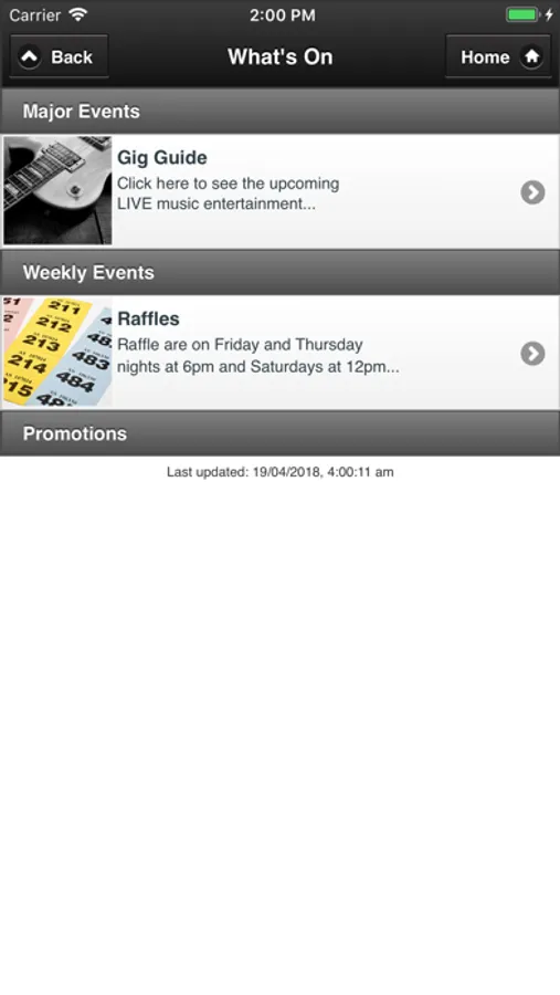 Day to day activities, Featured events, LIVE entertainment, Weekly performing artists, Dining menus, Daily specials and it notifies you of all special events. It provides you with all the venue’s information & news at your fingertips & more