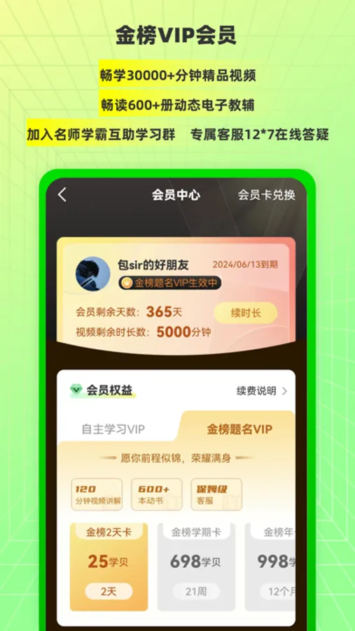 【金榜题名VIP】视频讲解全站通看,逐题精讲必刷题、同步知识划重点、专题拔高、题型强化,哪节不会看哪节,专属助教答疑,助你全方位提高学习成绩。