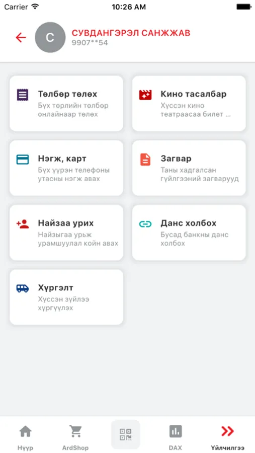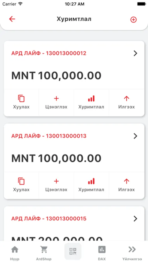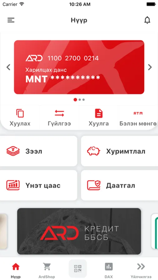 Та Ард аппликейшныг ашиглан өөрийн санхүүгийн хөрөнгийг хаанаас ч, хэзээ ч удирдах боломжтой юм. Үндсэн боломжууд: