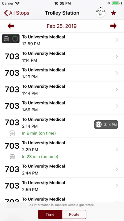• See which stop is coming next and the arrival time