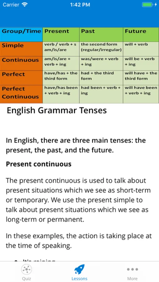 When you make a mistake the app explains you why your answer was not correct. Simple explanations will help you revise information about grammar details.