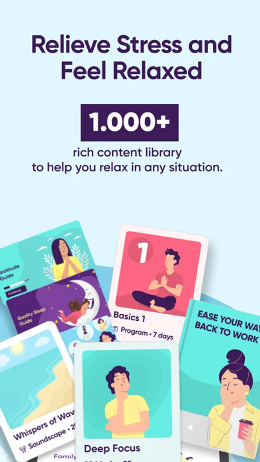 More than 350 thematic Meditations and Programs on hundreds of topics you encounter in daily life for relaxation, focus and discovering inner happiness.