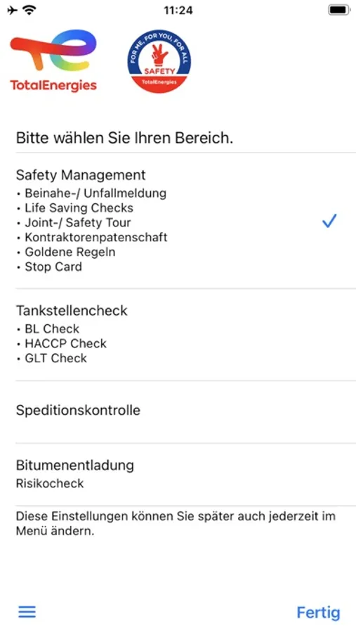 Die TotalEnergies Safety App unterstützt Dienstleister, Kontraktoren, Kunden und Mitarbeiter bei ihrer täglichen Arbeit und vereinfacht durch die digitalisierten Checklisten den Arbeitsprozess.