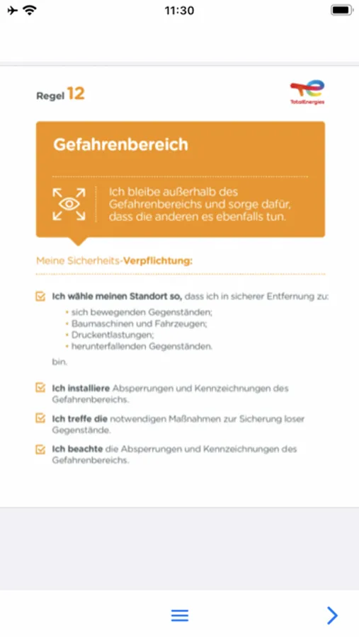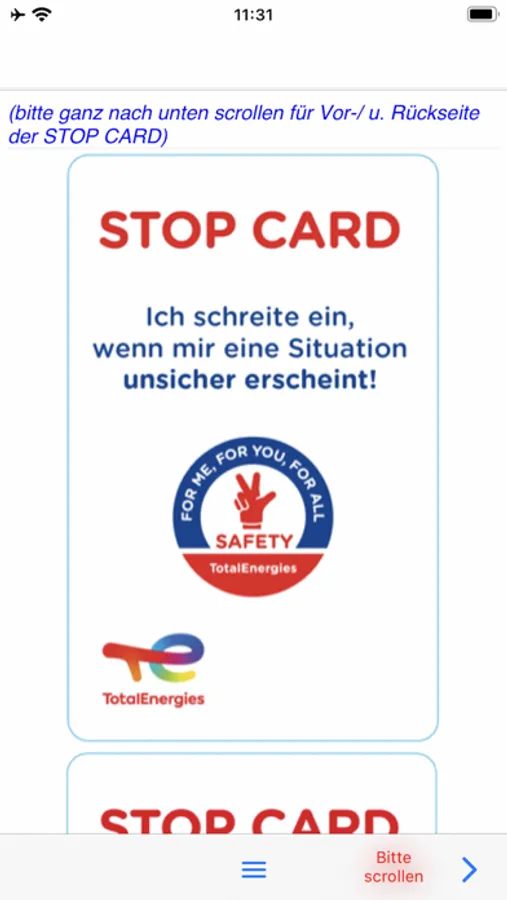 Innerhalb der App können sich die Nutzer über die "Goldenen Regeln" zum Thema Sicherheit bei TotalEnergies informieren und die STOP CARD nutzen.