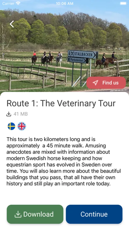 En berättarröst startar automatiskt när en intressant plats passeras. Slingorna berättar om Strömsholms 500-åriga historia som helt präglats av hästar. Intressanta fakta och anekdoter från dåtid, blandas med nutid och framtid. Slingorna i appen är rikt illustrerade med gamla och nya bilder och kan bara avlyssnas på Strömsholm. Det är gratis att ladda ner appen och att lyssna på slingorna tack vare stöd från Leader Mälardalen.