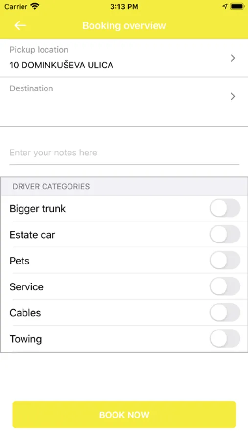- You can define the number of passengers for your ride, car type (caravan) or pets travelling with you