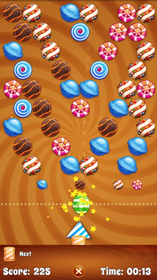 Slide your finger left and right to rotate the candy catapult, then release to send the candy flying across the screen. Match three or more types of the same candy to remove them from the game board. But be careful as the candies are continually descending - if the candies reach the dotted line, it’s Game Over!