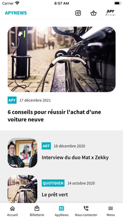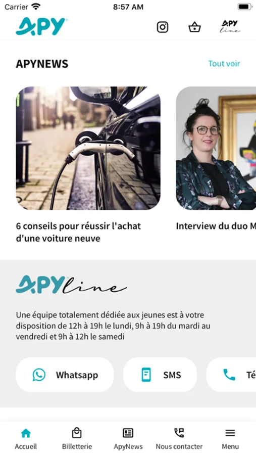 - La APY line : pour les clients APY de 18 à 30 ans, retrouvez tous les moyens pour contacter votre banque (téléphone, SMS, mails, WhatsApp, Instagram).