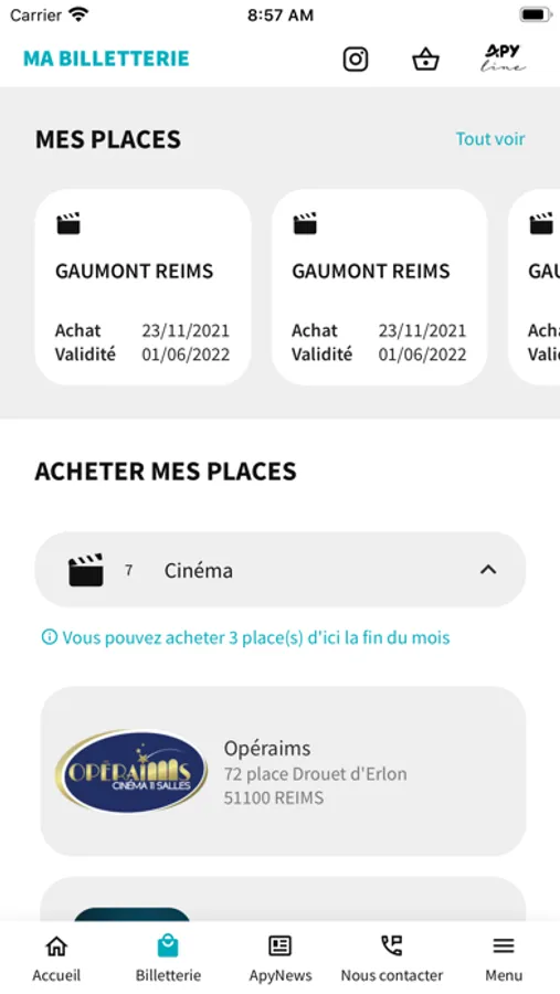 - La billetterie : vous pouvez acheter vos places de cinéma mais également vos accès à différents évènements du territoire, à des tarifs préférentiels grâce à nos partenariats.