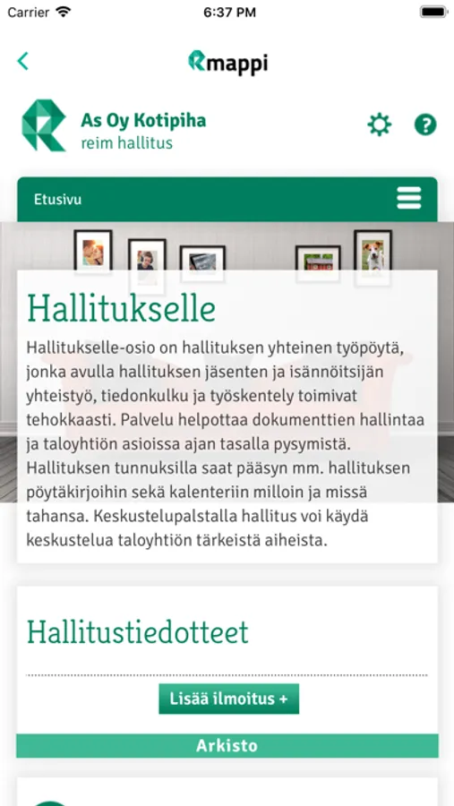 Meidän mielestä jokainen taloyhtiö on oma yhteisönsä ja jokaisella yhteisöllä on oma tahtotilansa miten kehittää yhteisön asumisviihtyvyyttä eteenpäin. Siksi tarjoamamme sähköinen asiointikanava on laajennettavissa taloyhtiösi tarpeet huomioiden.