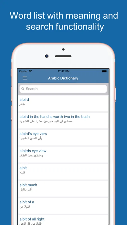 Our new English to Arabic Dictionary and Translator app is a light weight and elegant tool. You can find over 1,35,000+ english words with their Arabic meanings for Free on your smartphone! You can easily search for any word you want and we will take care of giving the meaning of it and the best thing is that you can take quiz to test your knowledge in this Indo-Aryan language.