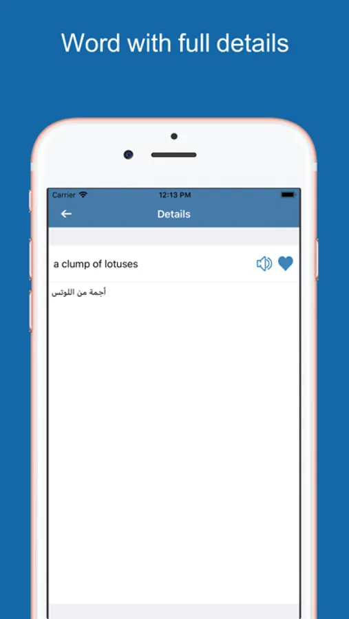 - Want to save a word meaning in the favourites? Tap the heart button and we will add this word automatically in your favourites. You can easily access to it anytime within the favourites choice in the options menu.
