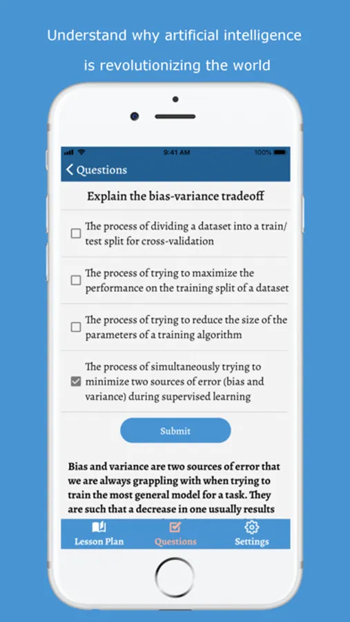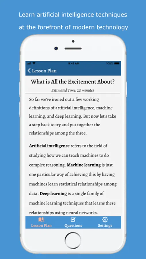 Whether you are a seasoned artificial intelligence practitioner or someone who’s completely new to the field, this app assumes no prior knowledge and has content for everyone.