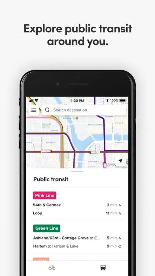 The Divvy App also shows upcoming public transit departures, including CTA ‘L’ train lines, local & express buses, shuttle buses, the Jeffery Jump Bus, Metra trains, PACE buses and the South Shore Line train.