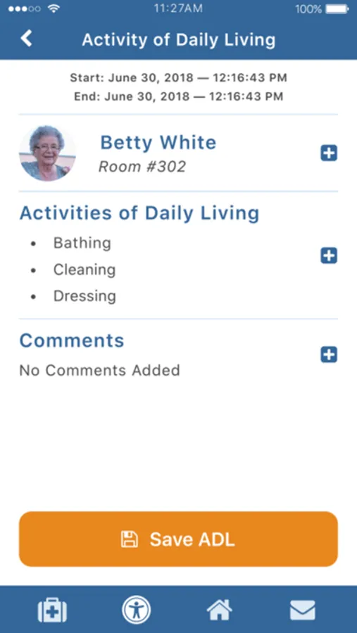 With RCare Mobile, caregivers can log resident visits for helping with ADLs, by checking in and out of the point of care. The RCare system can automatically track the time spent providing specific services. This is helpful for billing and also for staffing and tracking specific resident needs.