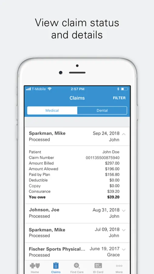 Check the status of your medical and dental claims and view claim details.