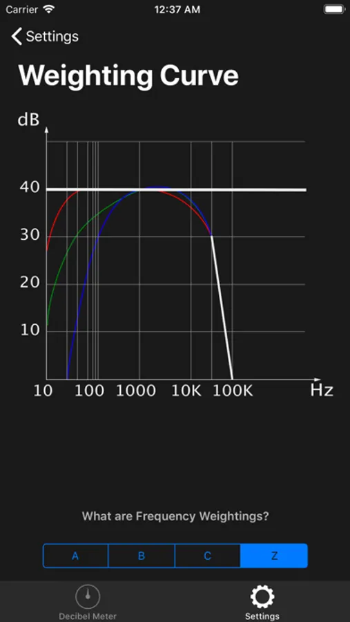 This application has settings screen, which give ability calibrate decibels according to device microphone specifics.