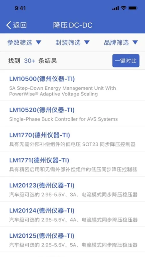 一款提供芯片查询和选型的专业工具,可以方便地通过芯片型号查询到芯片的详细信息,包括规格书、替代型号、参考价格、开发套件、应用方案、芯片特性、芯片功能、芯片参数和技术文章等信息,也可以通过参数选型和智能选芯等功能模块迅速获得合适的芯片方案,大大提高工程师和采购人员的工作效率。