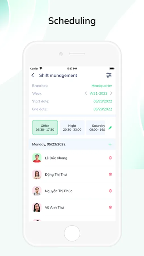 - Request to change shift, register shift for next week.