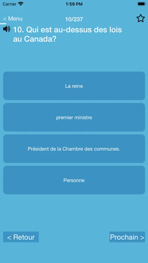 Grâce à ce test gratuit de citoyenneté canadienne, vous pouvez vous préparer au test de citoyenneté canadienne. Il existe de nombreuses fonctionnalités conçues pour vous aider à apprendre rapidement les documents de test de citoyenneté et à réussir votre test avec brio.