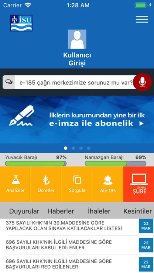 Kocaeli Büyükşehir Belediyesi İSU Mobil Uygulaması ile;