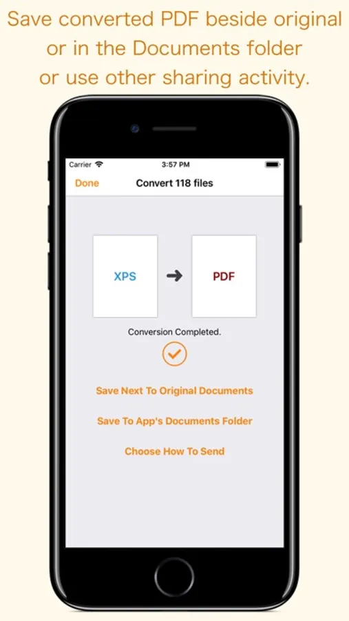 Save to App’s Documents Folder - Tap this button to save a converted file with unique name into XPS-to-PDF Documents folder.
