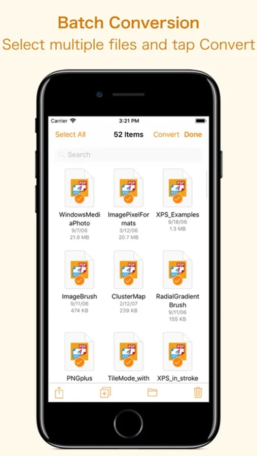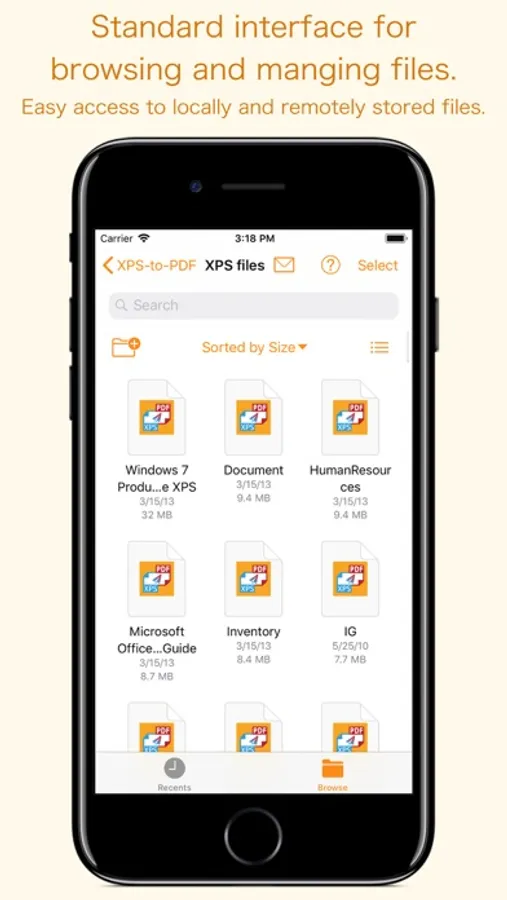 - Browse, find and sort documents to help you locate the document you want. Tap the XPS/OXPS file that you want to convert.