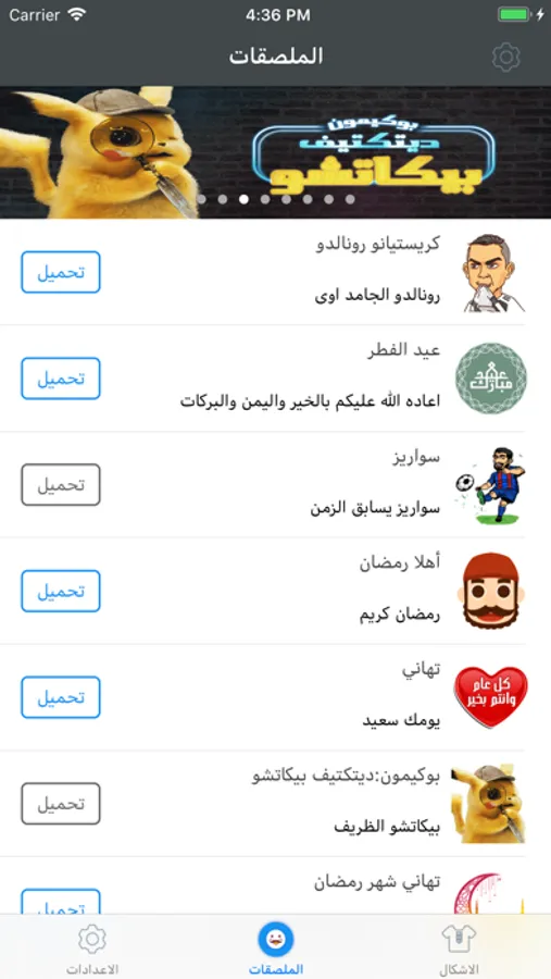 محتوى غني من الملصقات والايموجي العربية، ايضا البرنامج مجاني كليا ولا يحتوي على اعلانات.