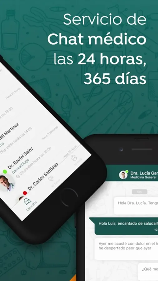 En la App verás a una lista de profesionales con un círculo verde o rojo. Si están en verde, te contestarán en menos de dos minutos, si están en rojo, te contestarán cuando vuelvan a conectarse. ¡Es muy fácil! Haz clic en el doctor que quieras consultar y empieza a chatear. El doctor te responderá al instante.