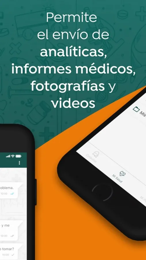 Puedes enviar fotos, vídeos, analíticas e informes médicos a los doctores. La consulta nunca se cierra y siempre puedes continuar chateando con el mismo profesional. La aplicación también permite mantener un historial médico simplificado para facilitar el trabajo del equipo médico.