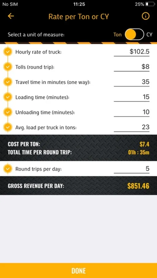 Convert your hourly rate into a tonnage or CY rate that factors in your tolls and travel time, as well as loading and unloading times.