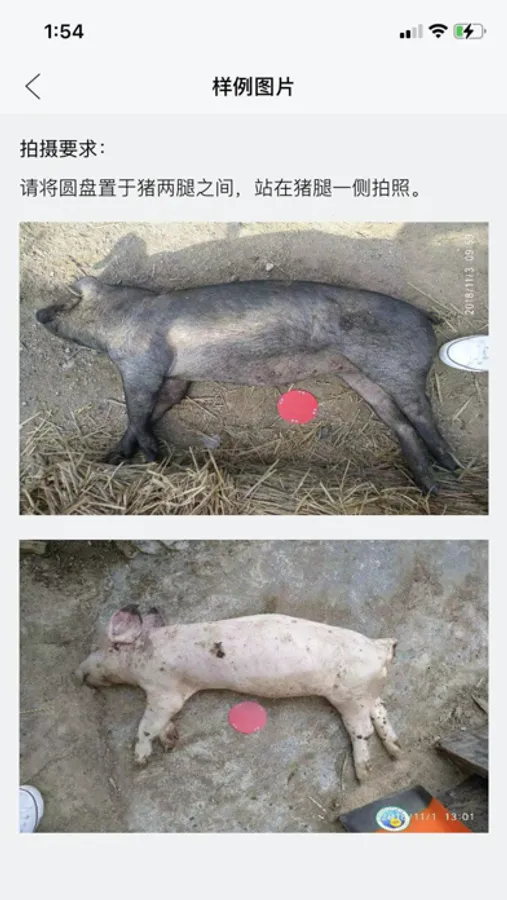 拍照:便于现场拍摄,根据矩形框将猪和完全置于框内