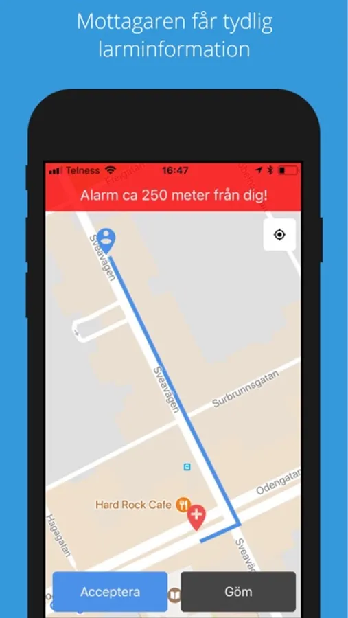 Om en olycka inträffar eller om en person drabbas av en sjukdomsattack kan snabba och professionella insatser vara helt livsavgörande. Men ibland tar det för länge innan ambulansen kommer. Ibland händer allvarliga tillbud på flyg, passagerarfartyg eller andra platser som kan vara svåra att nå snabbt. Därför behövs IRO – International Rescue Organization. Med appen kan du skicka larm när olyckan är framme för att få snabb hjälp av sjukvårdskunniga i närområdet medans övrig hjälp är påväg. Du kan också söka upp närmaste hjärtstartare och verifiera personers sjukvårdsutbildning.