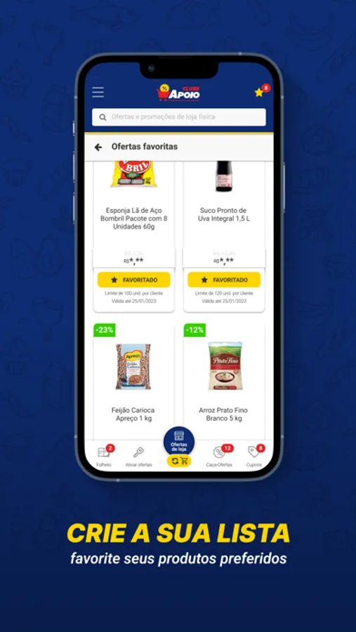 Receba ofertas diariamente, acompanhe as promoções do folheto, ative os descontos especiais para aproveitar em loja física e crie sua lista de favoritos com os seus produtos prediletos.