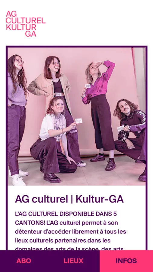 Cette application affiche un code QR qui certifie que la personne qui présente son téléphone à l’entrée d’un lieu partenaire est bien un heureux utilisateur de l'AG culturel. La personne de l’accueil n’a ensuite qu’à scanner ce code et à lui souhaiter une excellente soirée.
