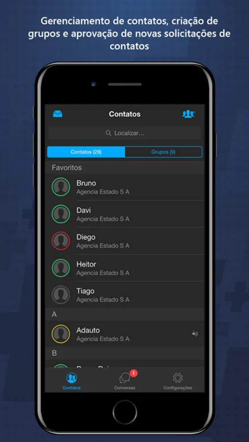 Aplicativo para troca de mensagens individuais ou em grupos, entre os usuários da comunidade Broadcast.