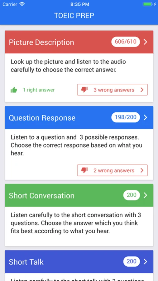 TOEIC Sample Tests Screenshots