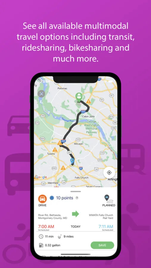 Earn reward points every time when you plan or log a trip with incenTrip, take advantage of multimodal travel options, outsmart traffic jams, reach personal green travel goals, win commute challenges, and invite your friends to join!