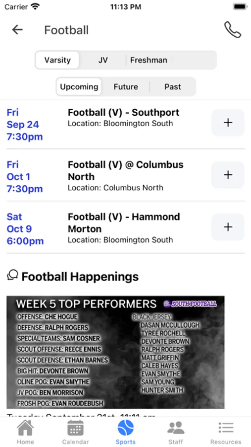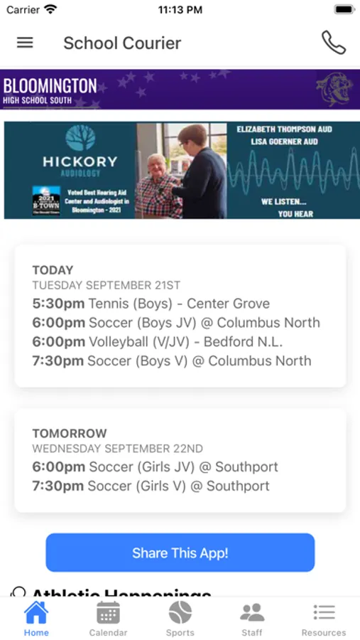 The Bloomington South Athletics app for iPhone, iPod, and iPad allows student, faculty and parents to keep up to date with athletic communication. Bloomington South High School is located in Bloomington, Indiana, USA.